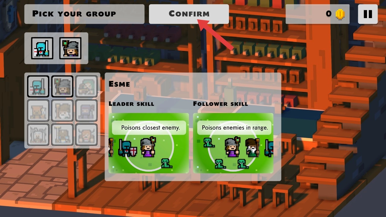 3、选好角色后,点击【CONFIRM】按钮,确认队伍阵容进入关卡。