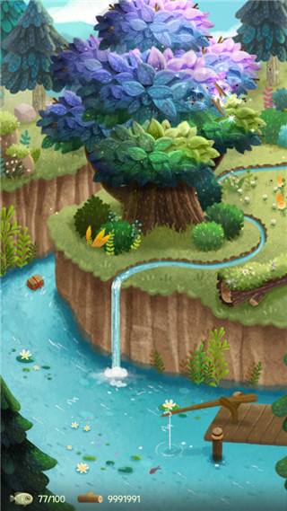 2、游戏里也能去池塘体验钓鱼玩法,把钓上来的小鱼用来招待来这里玩耍的小猫。