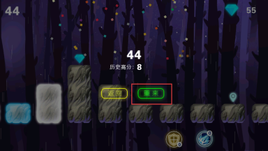 3、要是挑战没成功,点一下重来按钮就能重新开始,你可以试着去打破自己的历史最高分,还能解锁新的角色和游戏模式。
