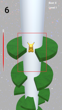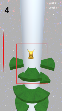 1、操控皮卡丘在螺旋塔内下落,当遇到绿色平台时点击屏幕使其跳跃,注意避开缺口以防掉落。