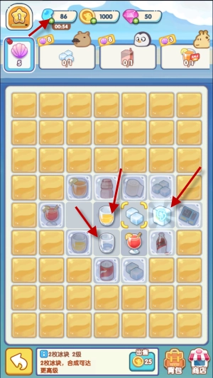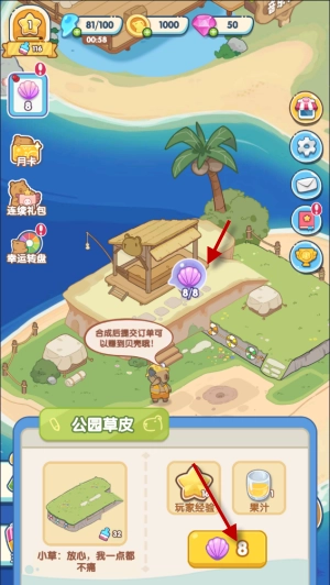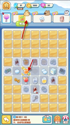 2、通过合成对应的物品来达成上方的订单,完成订单就可以获得贝壳奖励了。