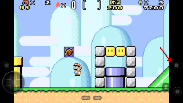 7、后面获得提示之后,我们得知了,按R键还能让人物进行旋转跳,并且再吃到蘑菇变大之后,旋转跳还可以击碎砖块,并且消灭无法用跳跃击败的敌人!