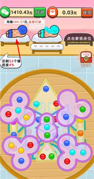 拔个罐子这款游戏和普通消除类游戏不太一样,它融入了拔火罐的特色元素。想要通过关卡,就得把关卡里各种颜色的火罐都消除掉。操作起来其实不难,关键是观察客人身上火罐的颜色,然后挑选相同颜色的火罐,只要收集到三个相同颜色的,它们就会自动消除啦。