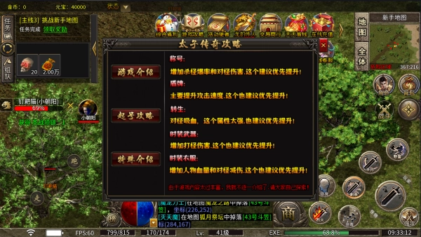 2、小资玩家攻略:激活首充大礼包,入手至尊赞助,进入地图后遇到怪物就直接攻击,碰到其他玩家建议谨慎行事!
