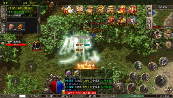 2、首爆奖励、升级奖励、BOSS首杀等超多福利打怪免费送,达成条件就能领到大量元宝和经验,元宝根本花不完。