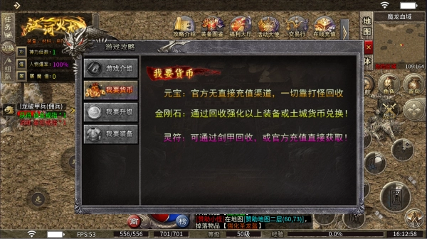 1、元宝:无直接充值渠道,一切靠打怪回收。