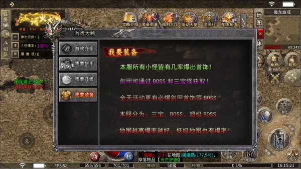1、本服务器内所有普通怪物都有概率掉落首饰,武器与盔甲可通过挑战BOSS和三宝怪来获取!