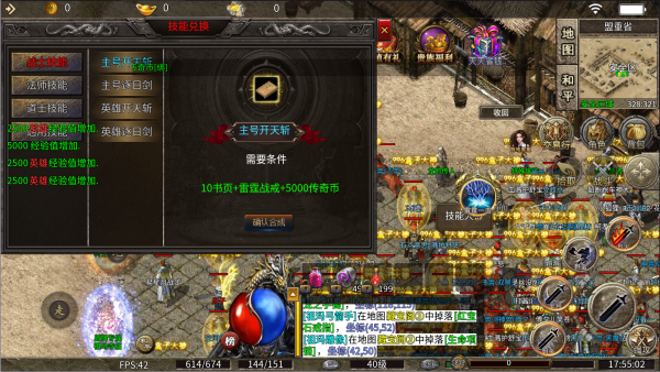 1、技能大师:在NPC出消耗书页以及对应装备即可学习强力技能,英雄也能一起学习,合击技能更加强大!