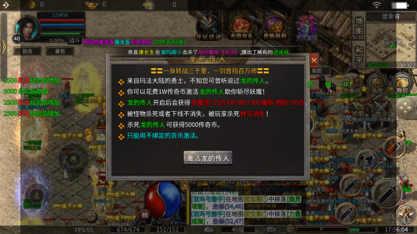 4、幸运使者:在NPC出消耗传奇币即可幸运升级,最高可以到9,每升一级都能带来巨大的属性提升!
