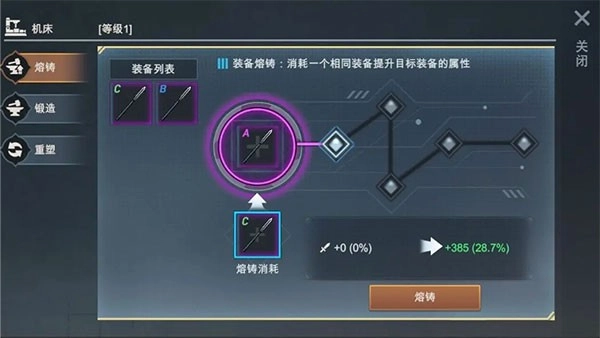 装备熔铸:相同装备现在可以发挥价值了,可以通过熔铸一件相同装备。用以大幅提升本身属性!