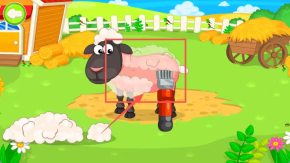 4在绵羊的右前腿位置找到那台红色的电动剪毛设备,启动它来完成剪毛流程,这样就能得到所需的资源了。