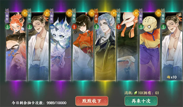 4、还能进入抽卡系统,直接进行10连抽,这样可以获得不少高级英雄。