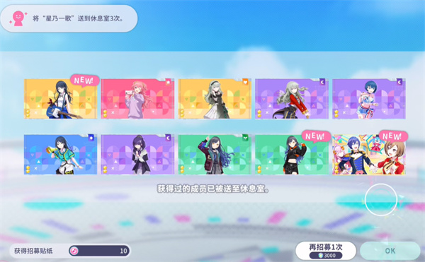 4、所有抽到的角色都会自动进入休息室,玩家可直接前往查看。