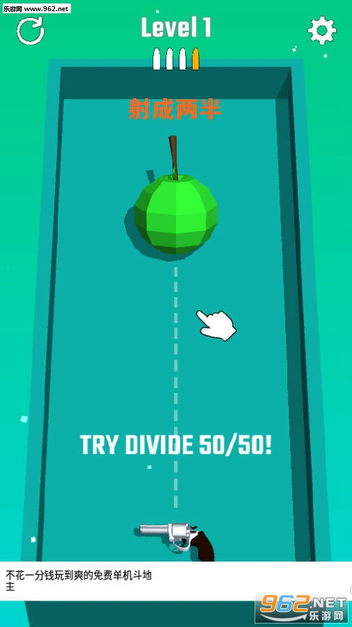 《射成两半》手机版是一款极度考验玩家反弹知识的射击闯关游戏。玩家将在此为成为神枪手而不懈努力,游戏设有极为严苛的通关条件——必须将关卡内的物品精准射击成平均的两半。这样的挑战难度极高,唯有通过大量练习与精准预判,才能顺利完成所有冒险。当你结束挑战时,基本已能成为神枪手,但坚持到最后往往异常艰难,你做好心理准备了吗?现在就开启这场挑战吧!