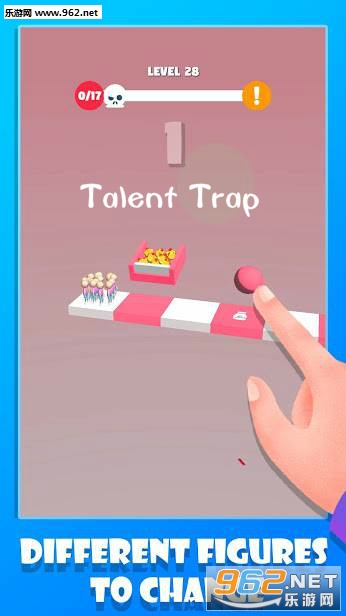 《Talent Trap游戏》是一款趣味十足的陷阱布置类休闲闯关游戏,画面设计精致,关卡挑战丰富。与以往穿越障碍、躲避陷阱不同,这次你需要在道路上布置钉子、铁锤等障碍,消灭所有路过的小人来完成关卡,快来试试吧!
