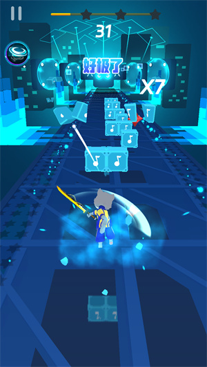 剑舞音乐猫,结合了跑酷、音乐等元素,玩家需要操控一个可爱的猫咪开启一场梦幻的跑酷,前方会出现很多的音乐方块,还得使用光剑将其打破,这样才能不断前行,而跑酷的距离决定了最终的分数,并且曲库的音乐非常多,选择一首就能去挑战。