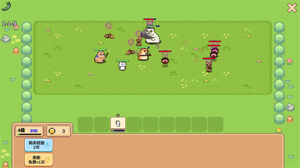 《Meme小战争》是由UP主自制的自走棋竞技游戏。玩家需组建专属的猫Meme小队,在关卡中巧妙排兵布阵,随时开启闯关挑战。若能成功击败所有怪物,即可获得金币奖励,进而召唤更强大的猫咪英雄。
