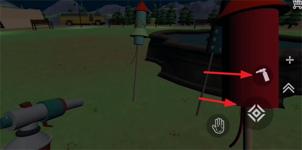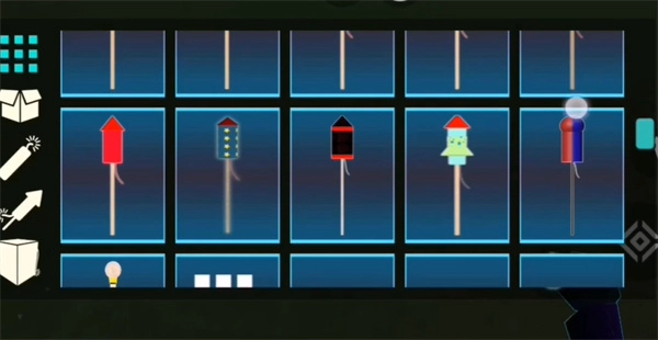 3、进入之后,里面摆放着数量非常多的烟花,当靠近这些烟花时,使用位于右侧的点火器来把它们点燃。