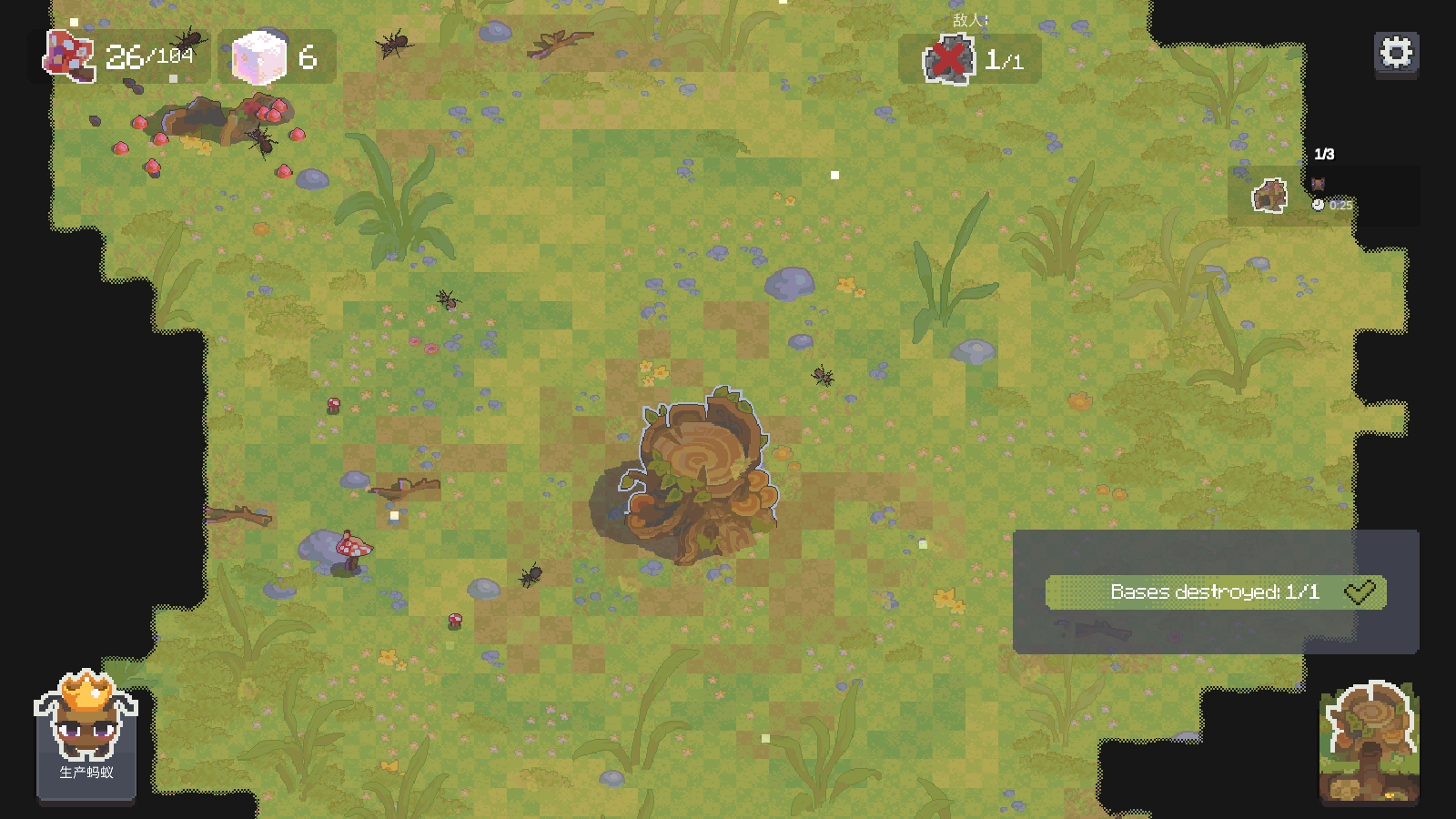 这是一个非常有趣的模拟玩法,你可以自由地发展整个蚁群。在让蚁群不断壮大的同时,还得消灭周围那些对你们虎视眈眈的其他蚁巢!