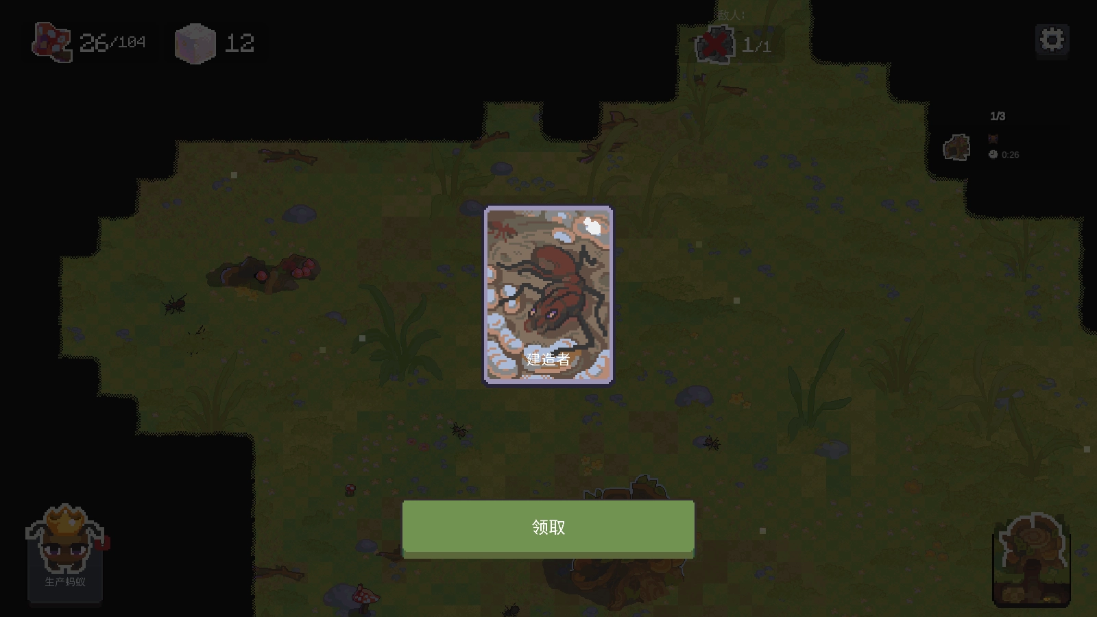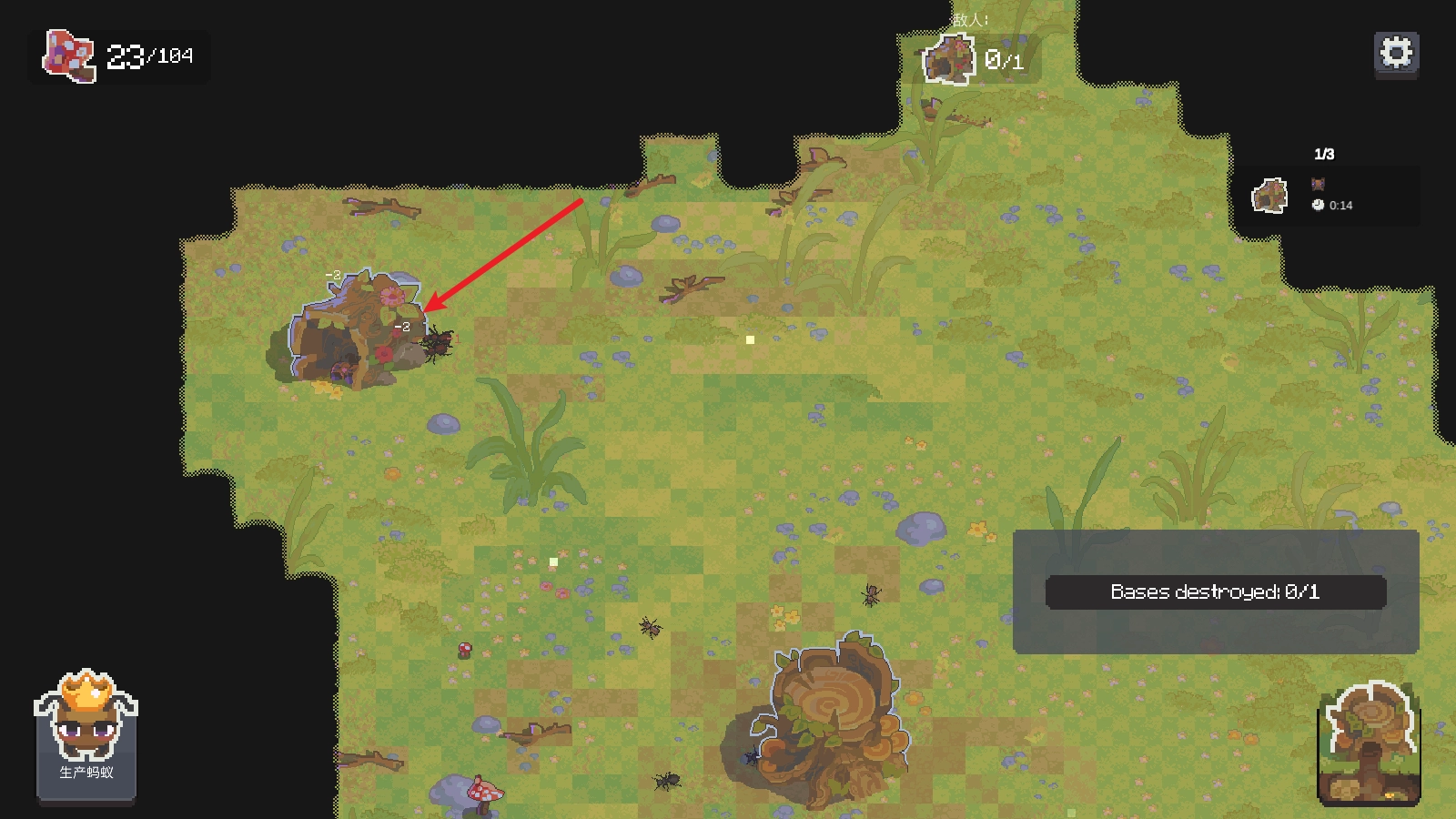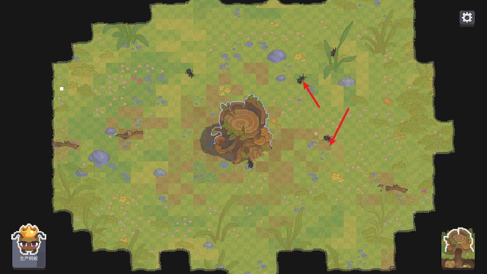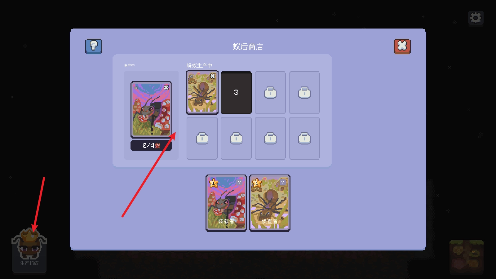 1、点击左下角的“生产蚂蚁”按钮,就能生成各式各样不同类型的蚂蚁。