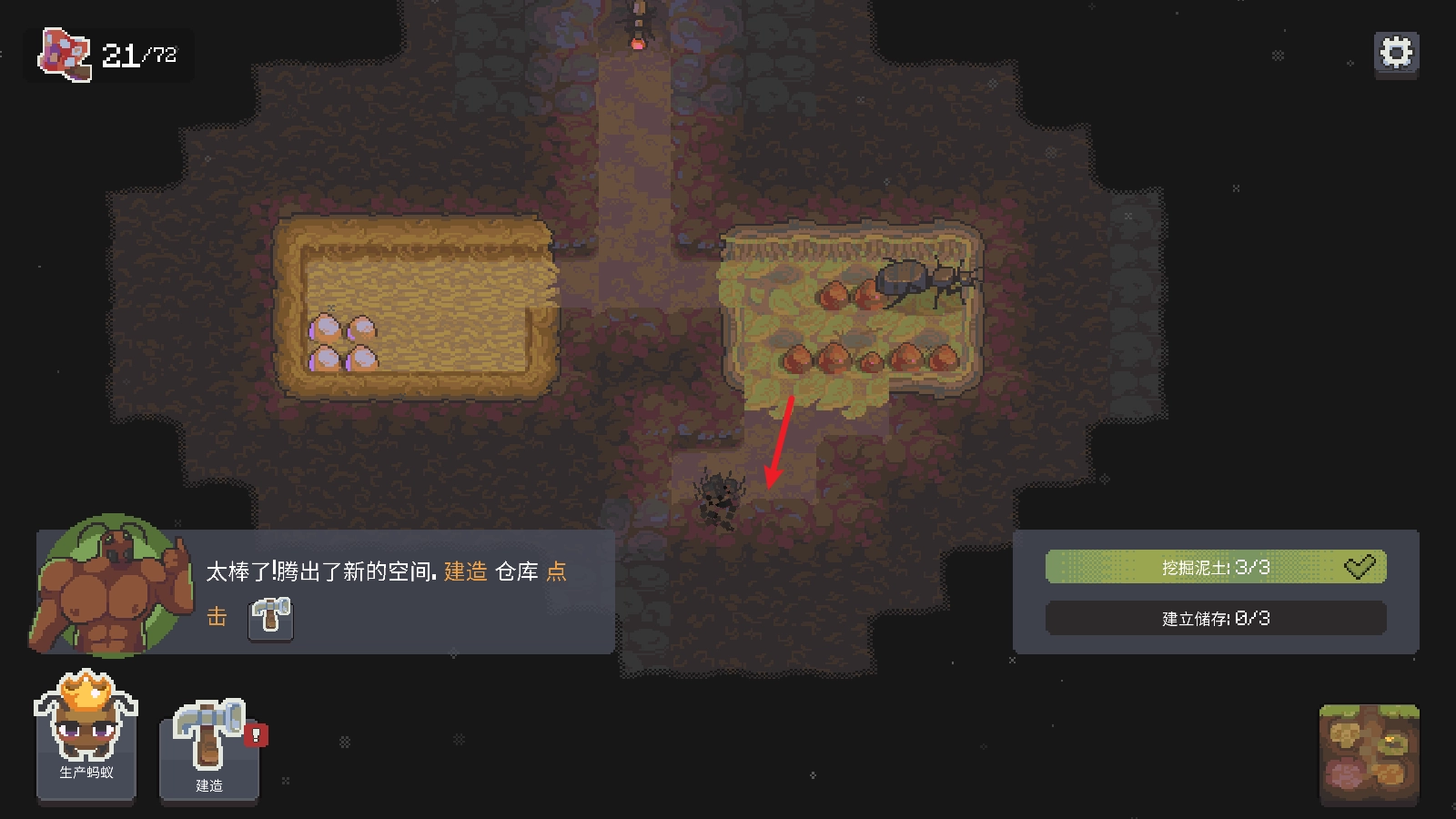 2、合理地扩展自己的领地,建造更多房间来贮存食物和各类蚂蚁,时刻准备进攻敌人的巢穴!