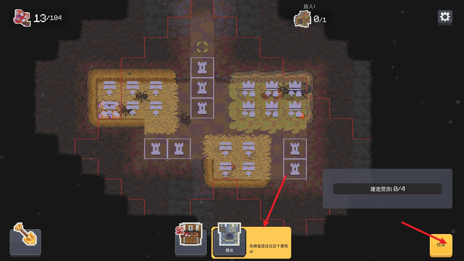 6、接下来建造兵营,这里可以供具备攻击能力的蚂蚁居住。