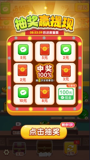 5、当合成操作进行到一定次数时,会触发抽奖功能,通过该功能能够随机获取一笔奖励。
