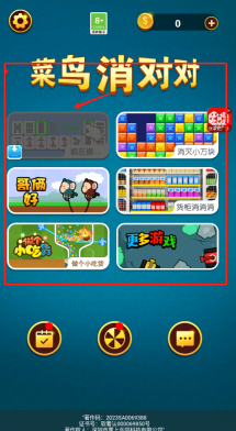 1、点击游戏主界面上的小游戏图标,像疯狂挪消灭小方块这类,挑选你想玩的迷你游戏。
