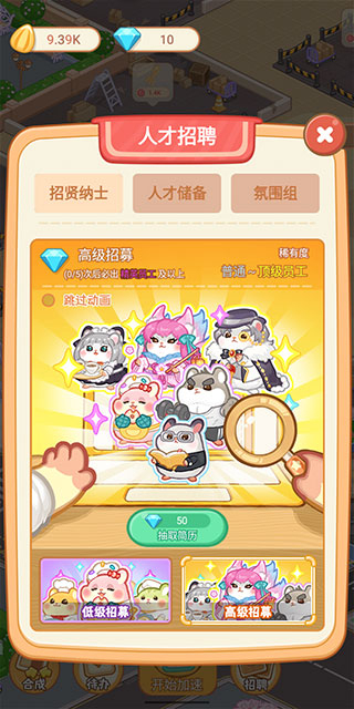 3这里的员工需要通过招募获得,能力更出色的高级员工,能为你提供更有力的帮助。