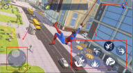 1游戏启动后,玩家能在关卡挑战与自由探索两种模式间选择,随后进入城市场景。借助屏幕上的方向控制装置调整角色的行进路线,同时触发对应的功能按键,即可让角色施展蛛丝能力——无论是在楼宇间穿梭滑翔,还是对目标发起攻击都能实现。