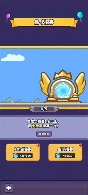 这个晶球招募设有成功招募多名即可免费再次招募的机制,通常情况下正常招募能得到更多道具!不过十倍招募也有它的独特优势!!那就是可以大量获取稀有招募道具。