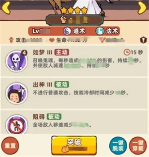2、突破:升到特定等级需要使用叫花鸡使伙伴突破,突破后伙伴可以升级到更高的等级。