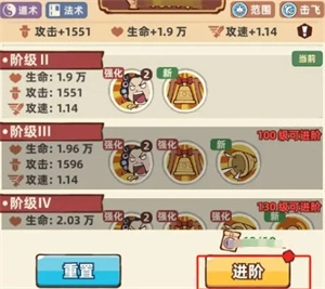 4、进阶:达到对应等级要求后,可以花费职业徽章进行进阶,进阶后会解锁新的技能,并提升已解锁技能的等级。