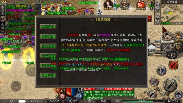 1、狂风项链是本服唯一带有攻速加成属性的装备,大家可以通过持续融合高阶项链来提升狂风项链的各项属性。