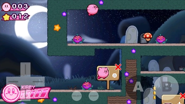 3、进入游戏如图,玩家需操纵卡比跳跃闯关;