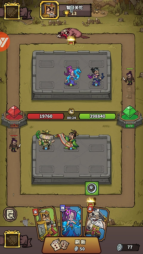 《进击物语》是一款融合Q版元素与三国题材的肉鸽塔防游戏,其背景设定在萌化风格的三国时代。玩家可抽取、召唤来自魏、蜀、吴、群、道五大阵营的英雄角色——这些角色各有千秋,有的攻击力强劲,有的则精于防御。玩家能依据自身战略需求,灵活搭配组合,打造出最适配的塔防阵容。 游戏过程中,玩家需通过布置与升级防御塔来抵御敌人进攻。同时,游戏融入随机割草机制,让每场战斗都充满不确定性与新鲜感,使玩家得以体验别具一格的肉鸽塔防乐趣。