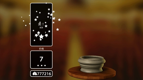 在成品界面点击右下角的拍卖图标,就能把作品拿去拍卖。刚开始做的陶器因为造型、装饰都比较简单,只能卖几十块钱,但随着陶器的造型设计和上色工艺越来越复杂,价格也会跟着涨上去。看着自己亲手做的陶器卖出不错的价钱,心里既开心又有点舍不得。卖掉陶器后,我们可以去商店买颜料、装饰品这些材料,用来制作更精美的陶器。