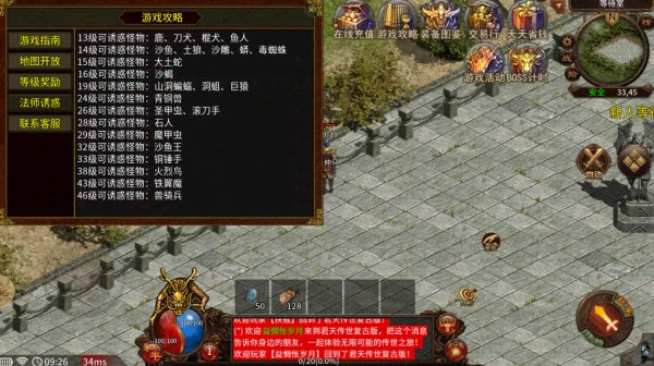 2、开区第3天20点开放:炼狱7层、职业炼狱16-18层、焰火屠魔、建立行会。