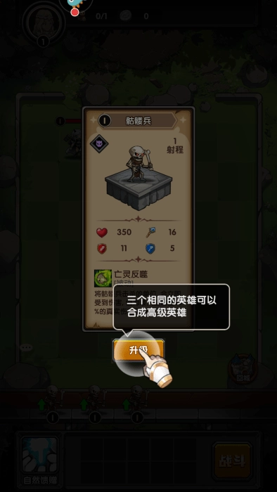当拥有三个相同的英雄时,可直接点击升级按钮来合成更高级的英雄。
