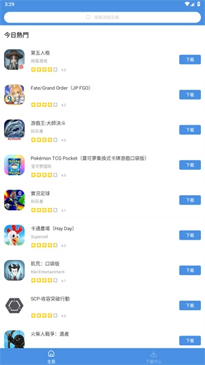2、玩家可以通过输入游戏名字轻松找到想要体验的游戏,并且还能滑动主界面,也能看到最新更新的游戏。