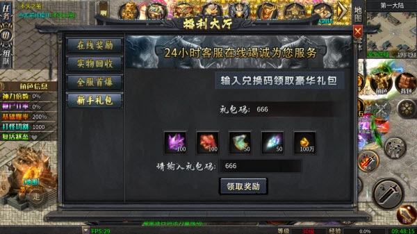 1、进入游戏后跟着主线任务走,先把“全民福利”里面的新手礼包、在线奖励、领取一遍。