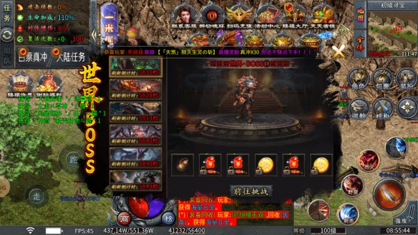 4、群雄争霸:合区后攻城期间10分钟在沙巴克复活点刷新一只,BO SS,3333血量,限伤1。