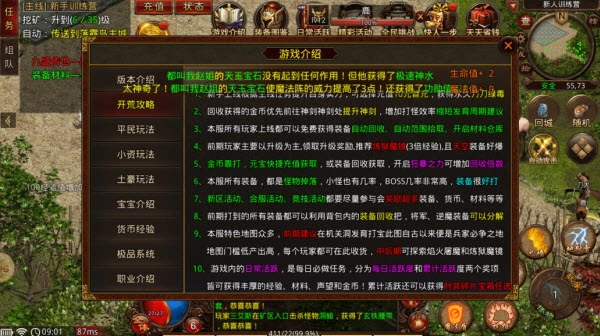 1、九盛传世属于一款自主编写的经典三职业微变版本,游戏中没有元神和骑战设定,不仅入门简单轻松,而且具备较强的耐玩性。