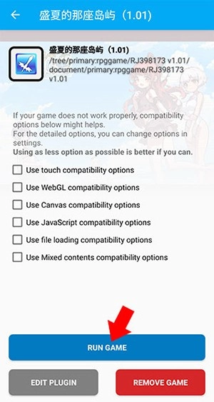2、找到我们刚刚解压的游戏目录,并点击下方的使用本目录文件(如果非RPG Maker MV制作的游戏,会弹窗提示无法游玩)