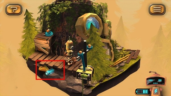1、首先在图左下角发现一个电池,点击收集后,机器人增加电量;