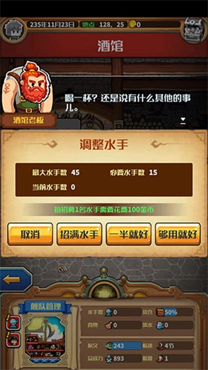 3、点击酒馆老板可以招募水手,每招募1名水手需要花费100金币。