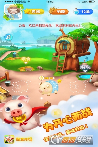 开启各式各样不同的游戏道具,当小猪长大后减少冷却时间。