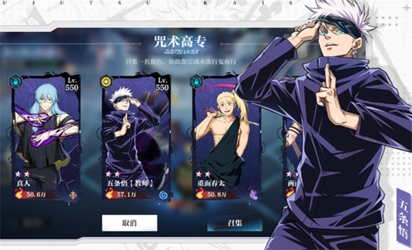 3、第三套阵容:虎杖悠仁+五条悟+狗卷棘+家入硝子+东堂葵。