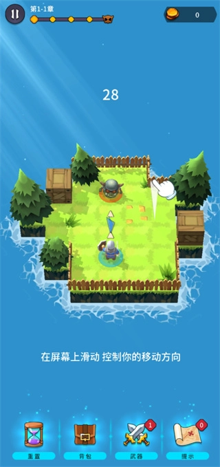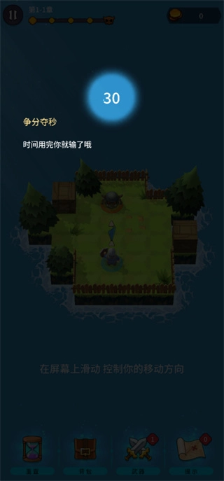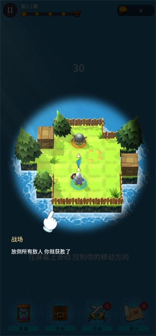 滑动屏幕控制角色向四个方向移动并攻击敌人;