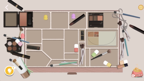 进入化妆关卡后,按照物品的形状进行收纳操作,点击物品并将其放置到合适的位置,即可完成收纳任务。